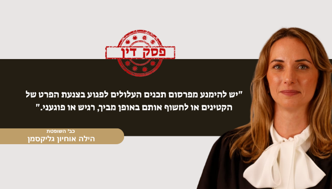 "יש להימנע מפרסום תכנים העלולים לפגוע בצנעת הפרט של הקטינים או לחשוף אותם באופן מביך, רגיש או פוגעני."
