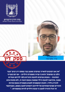 טענת האב לערעור -זמני השהות נקבעו בהתאם להמלצות ומשכך "אם אינו אצלי לא אתן לו מזונות".- הלכה פסוקה או טענה הזויה הרכב הדיינים הרב אליעזר איגרא, הרב שלמה שפירא, הרב מיכאל עמוס