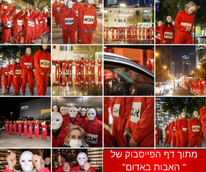 נוכחות מרשימה של האבות באדום אשר יצאו להפגין במתחם שרונה